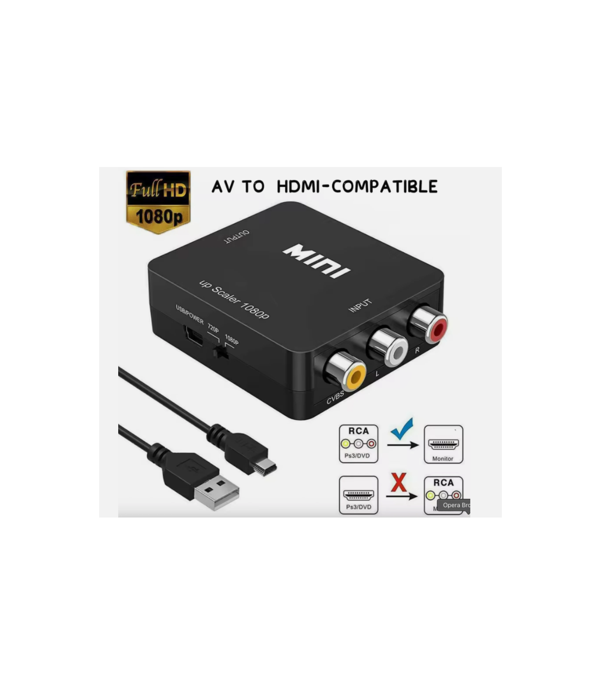 The AV to hdmi Converter is a high-quality mini adapter designed to convert RCA CVBS audio and video signals to hdmi. Perfect for connecting older devices like DVD players, VCRs, or gaming consoles to modern HDTVs, it ensures stable signal transmission and 1080P resolution support.
