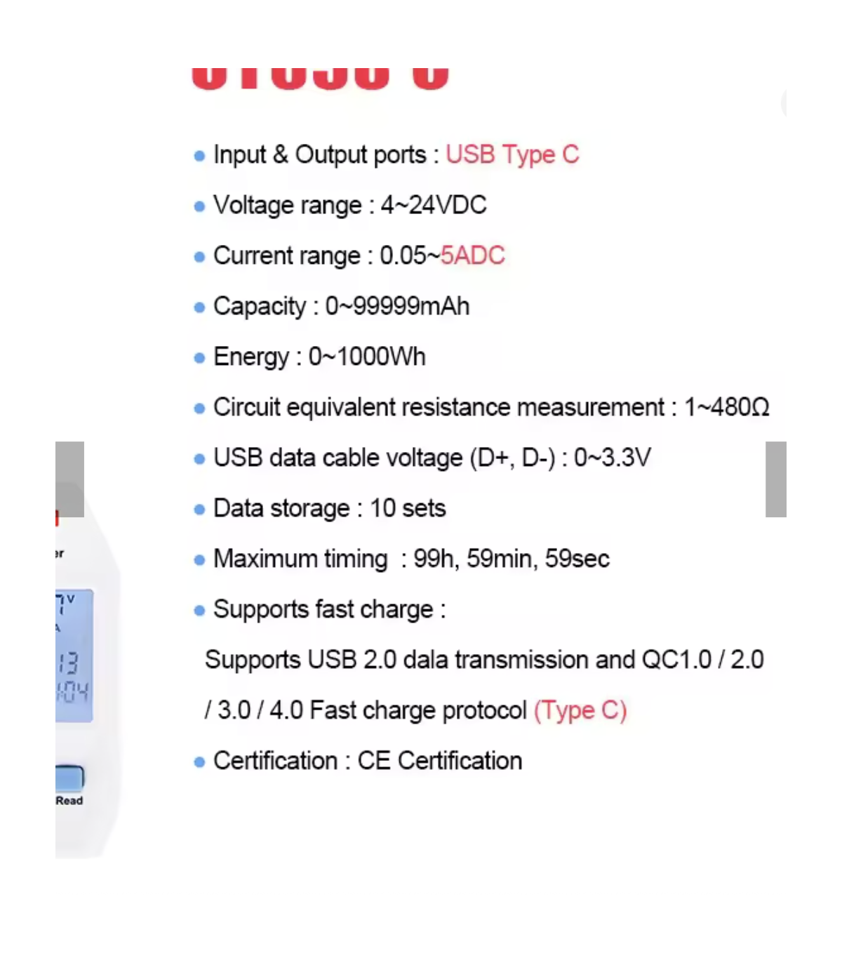 Function: Measures USB voltage, current, power, and capacity